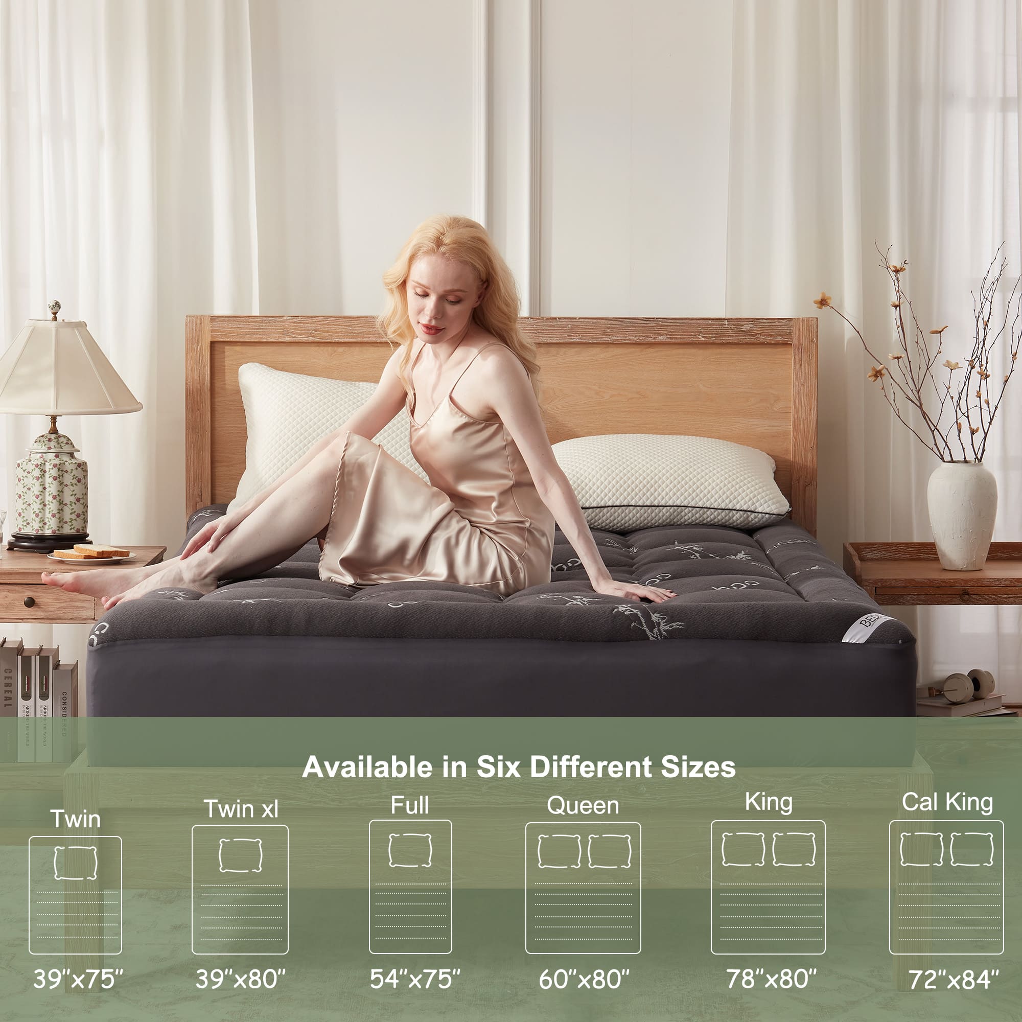 Breathable, Cooling Bamboo: Stay cool and comfortable with a breathable bamboo mattress topper that naturally regulates temperature and suits sensitive skin.